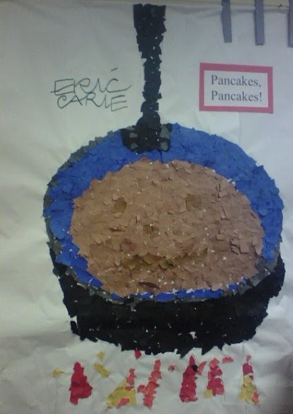 These two are collaborative piece of art. I trace the outline and the First Grade Friends create the mosaic. They made great Auction Projects later in the year. I took a photograph, had it framed, and the kids signed the mats in fun colors. Then the print went in an Eric Carle themed basket.